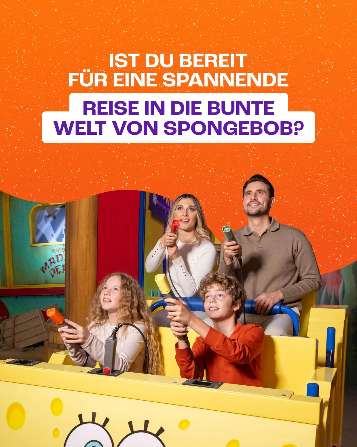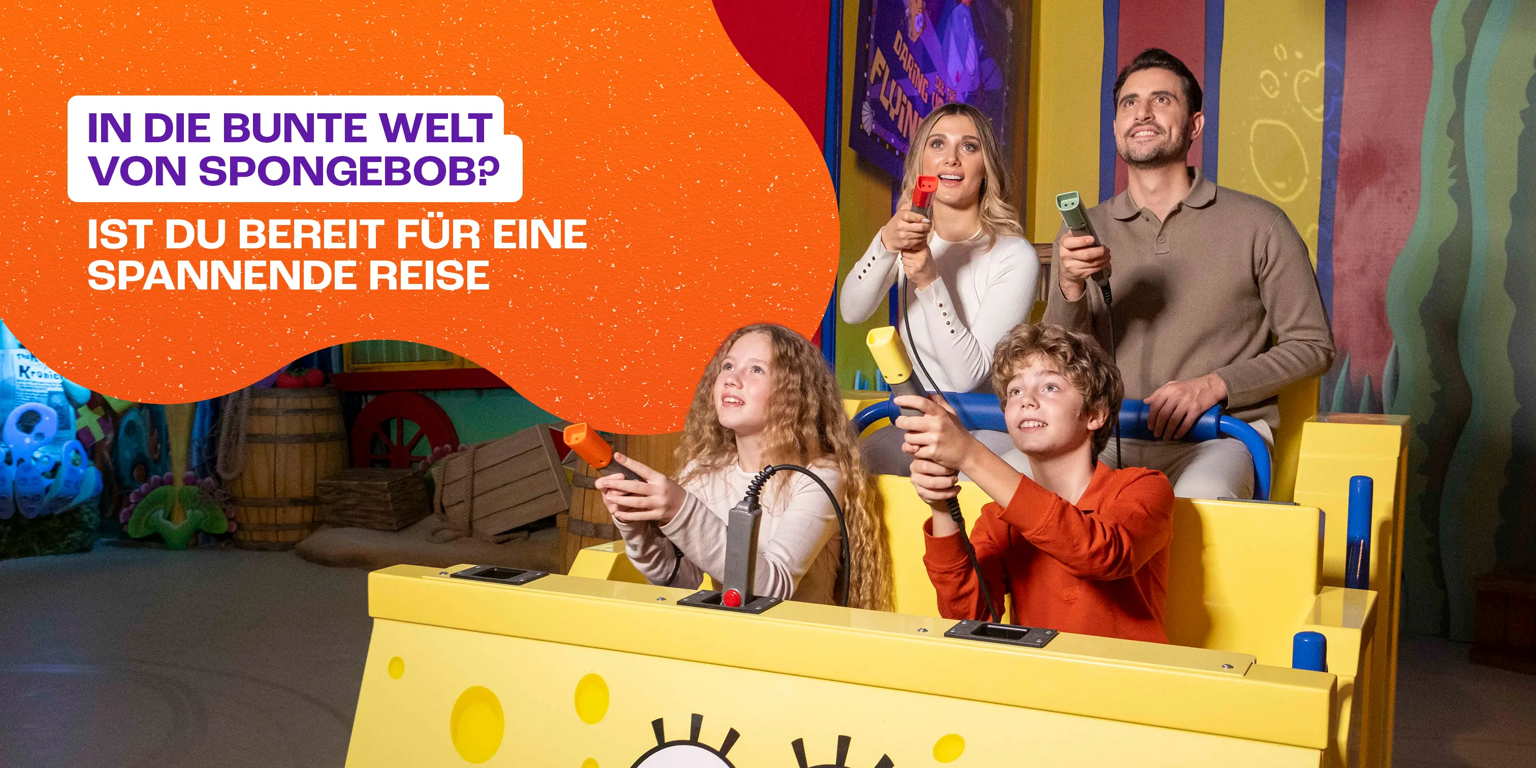 Taucht mit SpongeBob in Bikini Bottom in Unterwasserabenteuer ein, entdeckt Doras Regenwald, geht auf Missionen in der Paw Patrol Adventure Bay und spürt die Action mit den Teenage Mutant Ninja Turtles.Bei Nickelodeon Journey könnt ihr euch auf ein unvergessliches Flying-Theatre-Erlebnis freuen, das euch in die Welten eurer Lieblingscharaktere entführt!